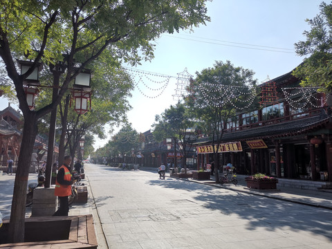 如今为了发展旅游,周边也大肆扩建,重新修建了牌楼和古城商业街,显得繁华很多。