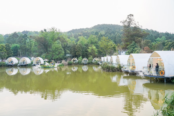 一个个白色的拱顶小房子紧临湖边围成一圈,赏着湖光美色,享着火锅美味,还有现场歌舞表演,如此惬意的生活谁不想拥有呢?