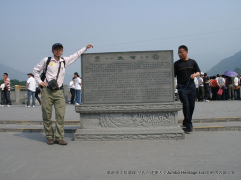 都江堰是我国古代建设并使用至今的大型水利工程,位于四川省都江堰市城西,岷江上游340公里处。都江堰是由战国时期秦国蜀郡太守李冰及其子于约前256年至前251年主持始建的。经过历代整修,两千多年来都江堰依然发挥巨大的作用。都江堰周边的古迹甚多,主要有二王庙、伏龙观、安澜桥、玉垒关、凤栖窝和斗犀台等。