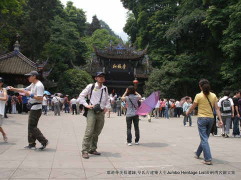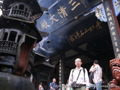 我们参观了南桥,然后乘车来到青城山,此山为我国道教发源地之一,属道教名山之一。位于四川省都江堰市西南,古称“可韩山”、“丈人山”,东距成都市68公里,处于都江堰水利工程西南10公里处。主峰老霄顶海拔1600米。在四川名山中与剑门之险、峨嵋之秀、夔门之雄齐名,有“青城天下幽”之美誉。