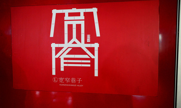 刚下车走进宽窄巷子就看到文化浮雕墙和消防车的宽窄LOGO文字了!