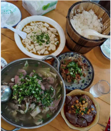 中午去附近的“甄记黑白荤豆花”,要了“腊排骨锅”,锅分为小锅和大锅,五人以上需要大锅,还可以再加豆花、蔬菜、主食(这些是自助的,每位再收6元),锅比较清淡,接受不了辣的朋友可以尝试,味道很好,拿豆花汤再加一点豆花泡米饭,味道超级棒。