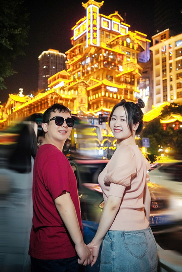 晚上去洪崖洞,洪崖洞是免费景区,扫码就可以进,任何收费的项目都是骗人的。走在里面,有一种“你站在桥上看风景,看风景人在桥下看你”的感觉,因为洪崖洞的夜景是要在景区外面对面的马路上看的,景区里面卖各种小吃(千万别买,很难吃),还有饭店,还卖些小玩意儿。
