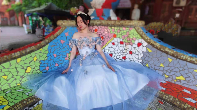 下午去了我认为重庆最值得的景点,“华生园金色蛋糕王国”,这里有大大小小的城堡,但是不管从拍照还是从自身游玩体验来说,都要租一身公主裙才有感觉,就像自己真的像公主一样走在城堡里,我想这是每一个女孩子的梦想吧。进入景区沿着路走,大概100米处就有一家租衣服的,也是景区内第一家租衣服的,记住一定要在他家租,他家的衣服干净而且种类多,一身是50元,不计时间,还会有配套的头饰,但是不包妆容,也不包照相,所以要自己化好妆来。再往里面走有租衣服+拍照的,但是比较坑,拍得不咋地,而且只要拍了,不管你要不要,都要收费,所以如果同伴拍照技术不错的话,互拍就可以啦。
