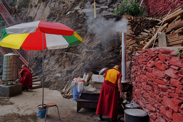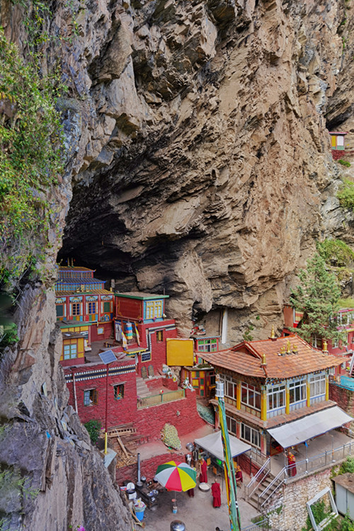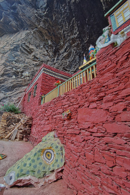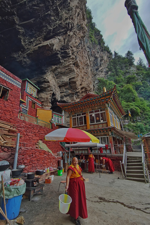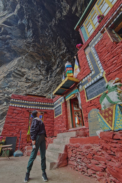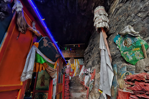 如今的圣窟是当地僧人的修行地,十几个僧人在这镶嵌于神山崖洞中的寺庙里过着苦行僧的生活,偶有当地信众前来朝拜毗卢遮那大师,据说非常灵验,和一般的藏传佛教寺庙相比这里的规模和香火或许不值一提,但光是这份隐世修行的无我境界就足以让人心生敬仰。