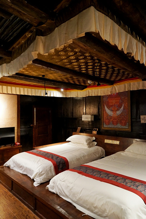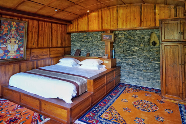 房间内部延续了嘉绒土司官寨的庄严华丽,冬暖夏凉的石木结构让都市里来的旅人可以暂时告别空调房的不适,当地人的民俗风情和生活智慧让天街民宿保留了最原汁原味的马尔康生活。