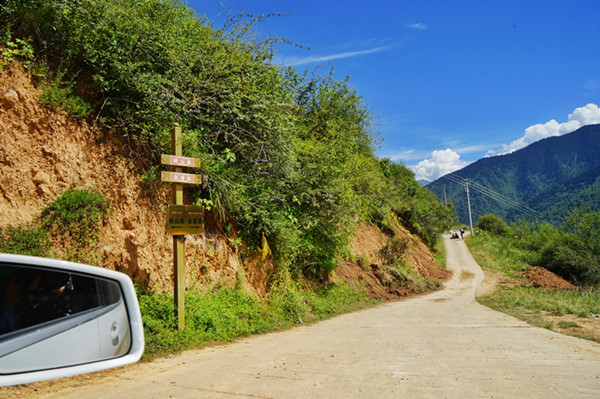 导航可以把你带到神山脚下,可最终选择怎样上山还是要看你的胆量,从山脚下仰望山腰有将近十层楼的垂直高度,于是我们放弃了徒步朝圣选择自驾羊肠小道上山,一路上几乎没有行人、土路和柏油路交错、不时出现的路标,越往上行驶我们对神秘的圣窟就愈加期待。