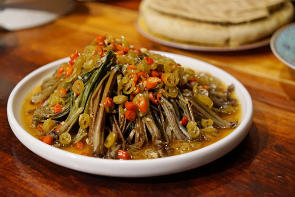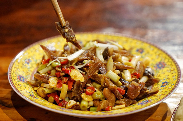 在天街住的舒服也吃的舒服,这里不仅有风味纯正的酥油馍馍、青稞酒、牦牛肉等嘉绒藏餐,更有适合大众口味的美味川菜,当地特色的凉拌核桃花和风干腊肉一秒抓住了我们的味蕾,我想这就是山野的恩赐吧。