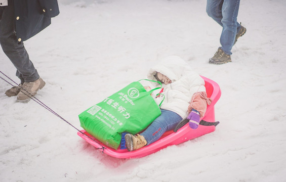 带孩子的话,这个雪橇是必备的,山顶很平,往返3公里都可以拉着走,大人也不费力。