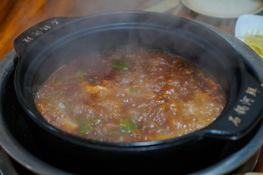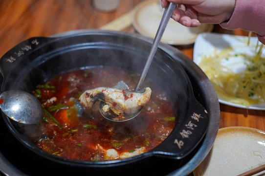 我们人少,就只点了一条鱼,配上配菜,在石锅里煮。