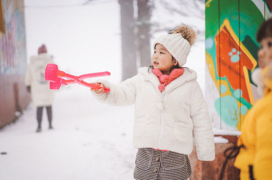 才没走几步,就非要停下来堆雪人了。