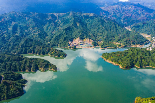 因为四周是连绵不断的青山,这里的湖水一年四季都澄澈如洗。特别在春夏两季,烟波浩渺的模样更像大山里的 蓬莱 仙境。
