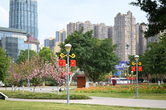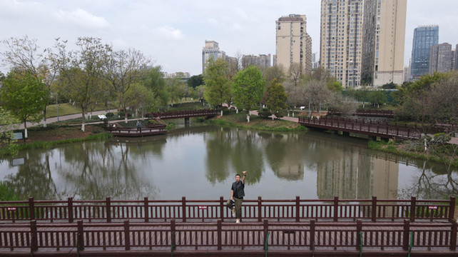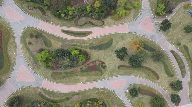 飞起无人机,俯瞰整个公园,景色十分清幽。