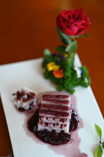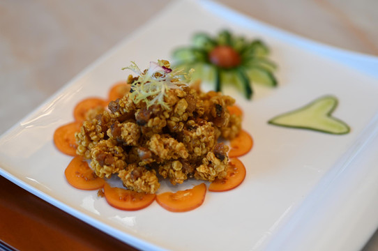 七彩鱼唇、金瓜鱼淖、纸包鱼、风味翘阔、黄金鱼头、麒麟鱼果、龙滩醉鱼、鲜椒鱼肚,每一道菜都体现了黑龙滩鱼的味道果然名不虚传,每道菜均是色香味俱全,一顿风卷残云之后,我们准备在华凌山庄品尝下午茶,休息一下。