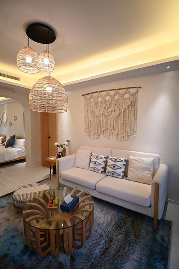 酒店共有401间豪华客房及可以俯瞰黑龙滩全景的特色套房,室内设计风格独具休闲度假理念,风格偏中式,将度假与自然巧妙的融合在了一起。