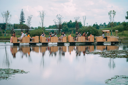 千寻的火车:是在湖上面开的水上火车,湖里开满了睡莲,有一个大吊车在钓金鱼,仿佛在千与千寻的梦幻世界穿行~