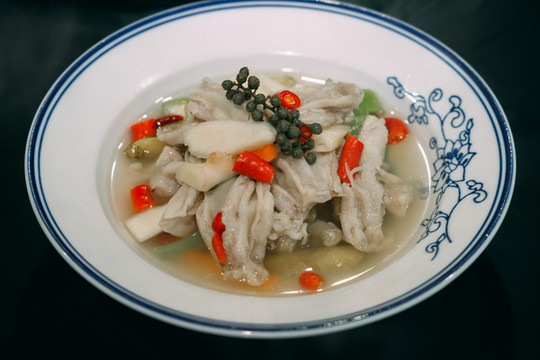 七彩鱼唇:上面铺满了剁碎得双椒,实际上吃起来不怎么辣,鱼肉鲜嫩而且也入味,很是合我的口味!