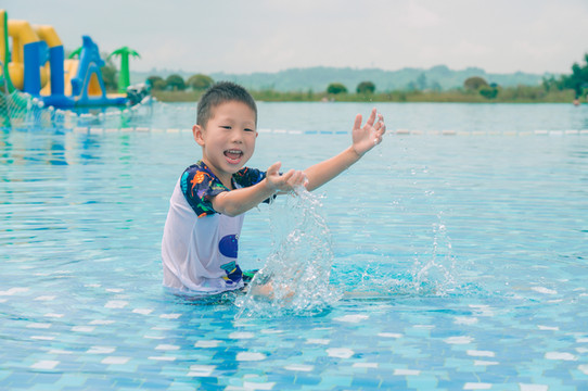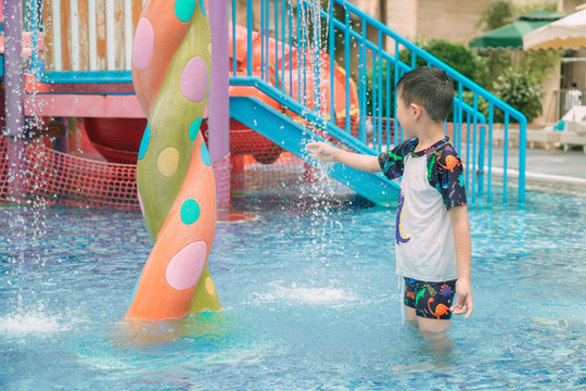 室外还有一个非常浅的水池,这个就很适合低龄宝宝玩,完全站立才齐腰的深度,带小宝宝的麻麻完全不用担心哈,而且不要求戴泳帽。