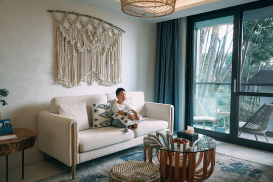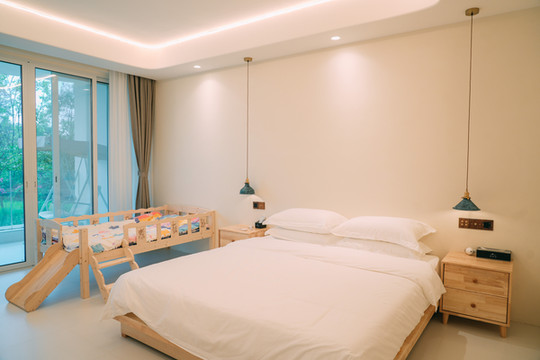我们住的是亲子套房,空间真的很大,特别适合全家出游,简约的装修风格很喜欢,全屋智能操控,细节挺不错,从装修摆件再到床品都超有品!