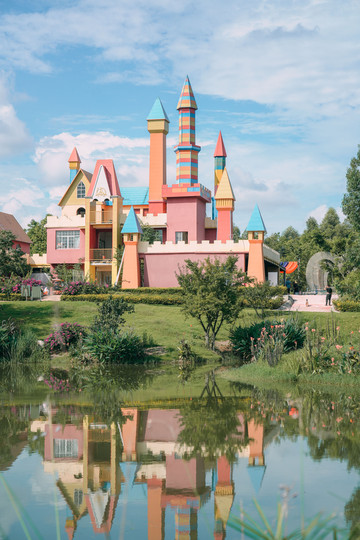 除此之外还有很多无动力项目:滑滑梯,蹦蹦床,沙池,秋千,跷跷板,攀爬,变形金刚……等等,反正你能想到的,这里几乎都有了。每个项目距离不远,可以一路边走边玩,拍拍照,玩一玩,完全不会觉得无聊!彩色城堡乐很好看,远远地拍了一张,由于时间有限下次再去吧!
