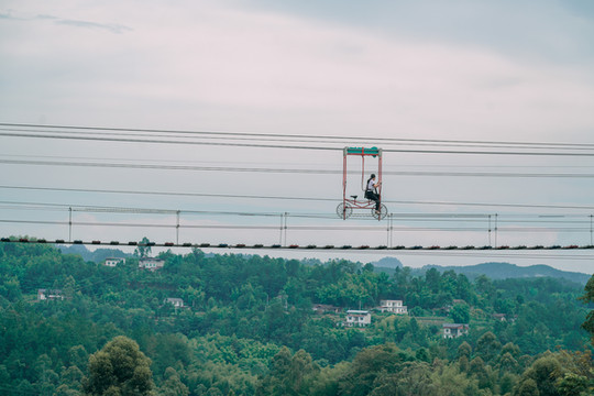 天空自行车:骑着自行车的从空中的绳索上通过,看着吓人的,实际上还好,恐高的慎选。