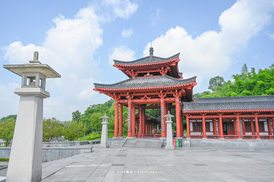 太白碑林是 江油 青莲旅游经济开发区李白故里的其中一部分,是国家4A级景区。青莲镇建了高铁站,h高距离铁站也是很近的,这样对于很多人而言交通就比较便利了,四周随处可见都是绿树蓝天,非常清新治愈,加上红柱白墙也是别有一番韵味,让我们在感受文化的同时,也能将美景尽收于眼底了。