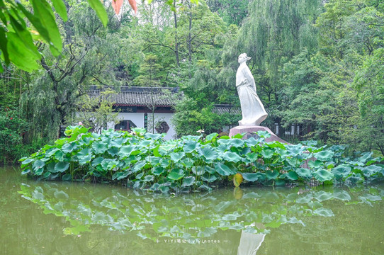 行走在诗情画意的林荫小道,宛转悠扬的古筝曲在耳边萦绕,仿佛当年的李太白在这里手捧书卷,激昂颂诗。