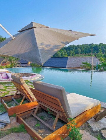 泰古里进去满目青翠,有异域风情的建筑,可以住宿,有室外游泳池,四处逛逛风景挺不错的,感觉就是一异域风情的农家乐。