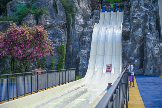 比较有意思就是:刺激加倍的全新水上项目巨龙滑梯,也许不知道还以为龙只是摆设,没想到时从巨 龙口 中螺旋滑下去直接到 水里 ,全程不要太欢乐。 还有悬崖滑道,它建在悬崖上的,右边的滑道垂直高度就有20m,很适合胆大的人哦!
