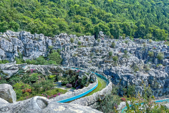 四川 漂流的地方也不少,但是在溶洞里漂流还是少见,怪石嶙峋的山峦和生意盎然的树木围绕着漂流,仿佛闯进了爱丽丝的梦游仙境。