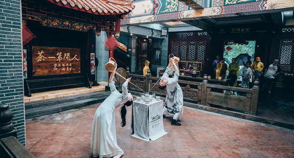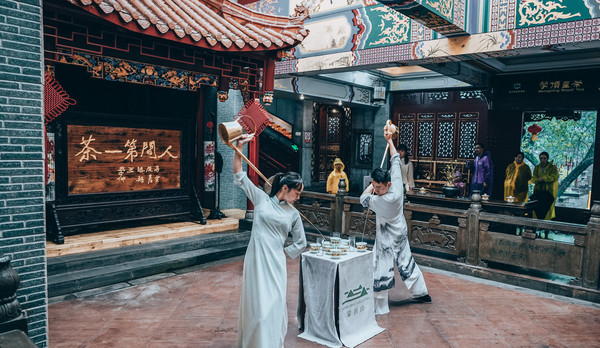 在天盖寺,还能欣赏到的是蒙顶山的茶艺表演-龙行十八式。