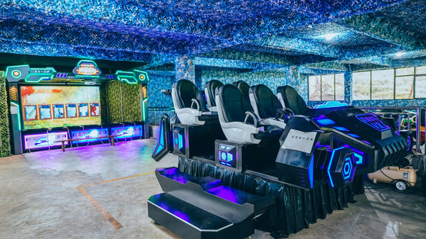 在树冠漫步接待中心的楼下,还有一个小型的游乐场,这里有VR体验、碰碰车、打枪等等,基本也可以玩上个一小时,然后可以沿着后山的栈道下山。