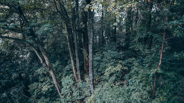 蒙顶山位于四川著名的“雨城”雅安,因常年“雨雾蒙沫”而得蒙顶山名,这里因常年雨量达2000毫米以上,一年中有多达200多天都在下雨,所以在古时候也被称为“西蜀漏天”,这样湿润温热的气候条件,造就了这里的植被茂密,树木繁多,远远看去,一派生机勃勃的景象,像极了热带雨林。
