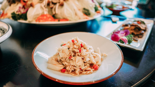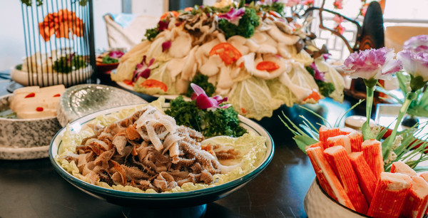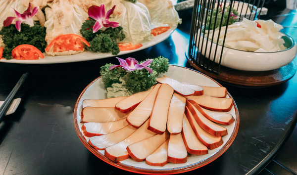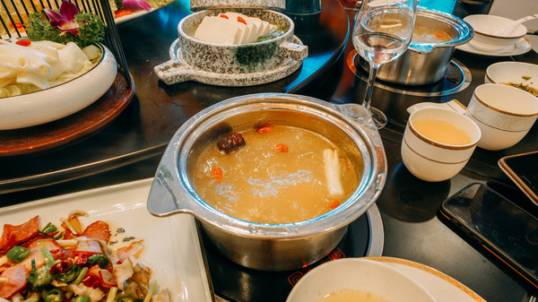 在鸡汤锅里,想吃什么就烫什么,加上蘸料,很入味,尤其是菌类的,这个季节吃起来是最棒的,上林苑这个三仙小火锅也是游客评价很高的,来了一定得尝尝。