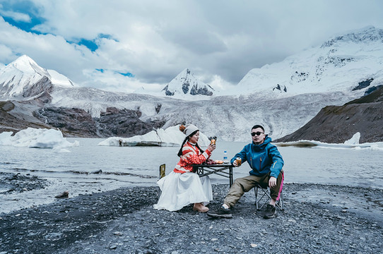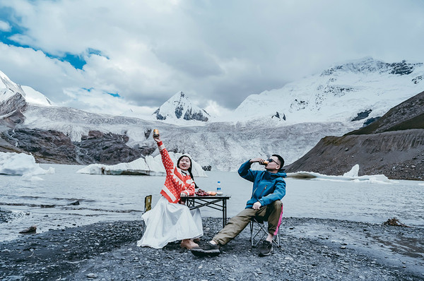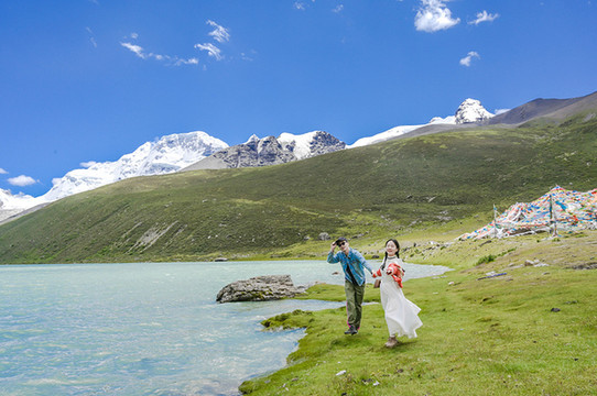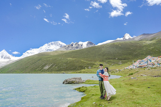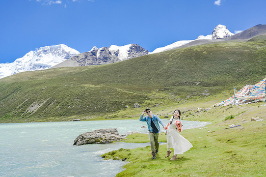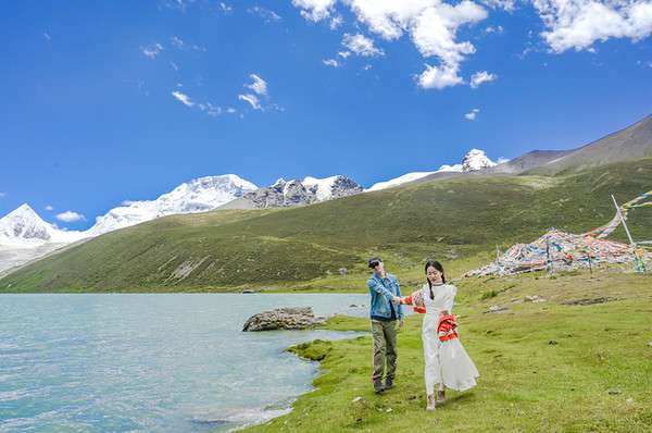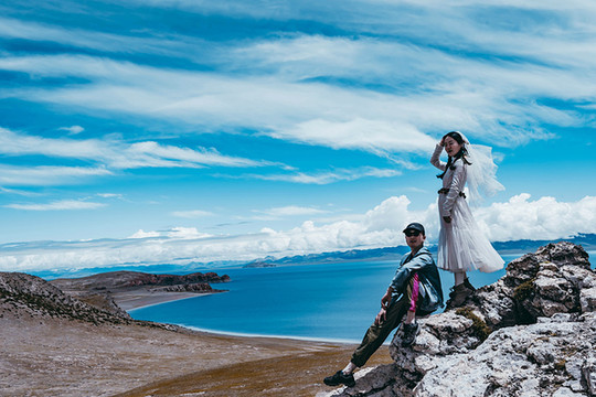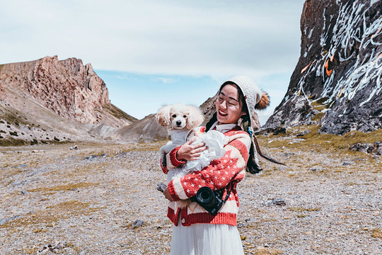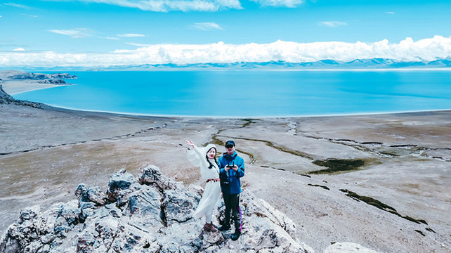 若是想举办一场盛大而完美的婚礼,圣象天门倒是个不错的选择,三五好友,清风做媒,还有纳木错女神的祝福,一对新人又怎得不到圣洁的爱情。我们在这里便遇到了一对新人,带着他们心爱的宠物狗,拍摄只属于他们的婚纱照,而一朵借来了他们的宠物犬,也拍了起来!