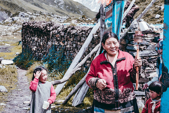起初我因为对转经筒有着极大的敬意,而不敢去触碰 ,只敢静静的看着藏民们从容而虔诚地轻轻摇转转经筒。藏族老妈妈似乎看懂了我的内心想法,便鼓励我去转一转转经筒。她先是给我介绍了转经筒的来历,用途和使用方法,而后轻轻把转经筒放到我手里,只对我说四个字“心诚则灵”。其实很多藏民不能流利的朗诵经文,他们便用转动转经筒来代替诵经,祈福本不在方法,重要的是心里的诚意。