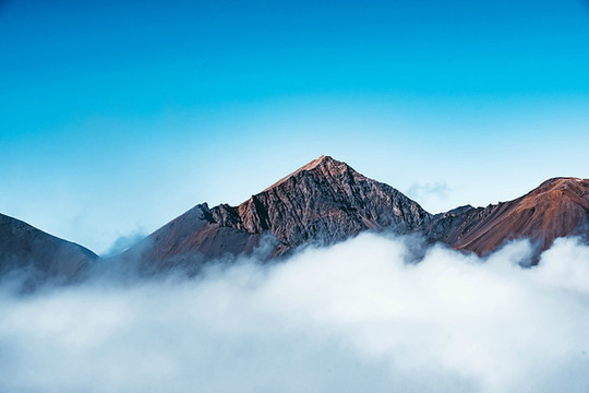 在山下往山上看的时候还是一片雾蒙蒙的,什么也看不见,沿着盘山公路往上开,一路上冲破了层层大雾与云层,终于云开雾散,天上一片深蓝,是如此的纯净,仿佛已经进入了另一个世界。