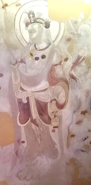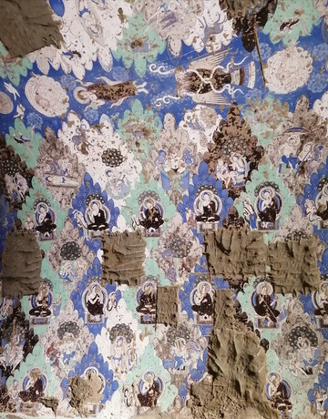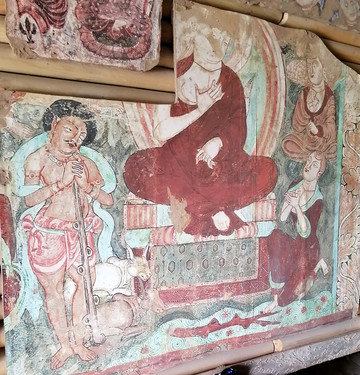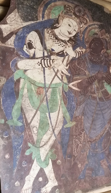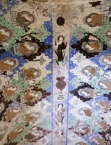 克孜尔千佛洞是我国最早开凿的石窟,它见证着千年前佛教东传的历史。规模不太大,仅有4个石窟区,正式编号的石窟有236个,目前仅开6个洞窟,窟龛内没有佛像,仅保留着残损的壁画,可以了解龟兹人的服饰,舞蹈以及乐器,对于研究者相当有价值。几个窟各有特点,墙上的壁画脱落严重,顶上的保存比较好,颜色非常鲜艳,人物形态生动,表情丰富。其中一个窟里有许多信徒的手印。还有一个窟是僧人房,可以想像他们的生活很艰苦,能支撑他们的唯有信仰。石窟有些独到之处,但管理水平还有待提高。入口远离石窟几百米,不明白为什么搞得这么不方便。石窟前有个小广场,鸠摩罗什坐像高高立在正中,旁边是存包处,所有包和随身物品都要存,只能带手机进入,这是因为洞窟很小,四周没有防护,背包很容易蹭到墙壁。存完包在红线后排队,听候两名工作人员安排,年长一些的负责组队,年轻的登记信息。组队的很死板,严格按每十人一组,我们四人加上另一拨四人凑不够数,眼瞅着旁边两个五人组很快进去了,我们等了半天又来了两人才组成队。每个窟有一个讲解员,只讲这一个窟,都是背台词,多一点不会说。