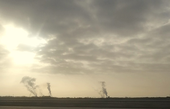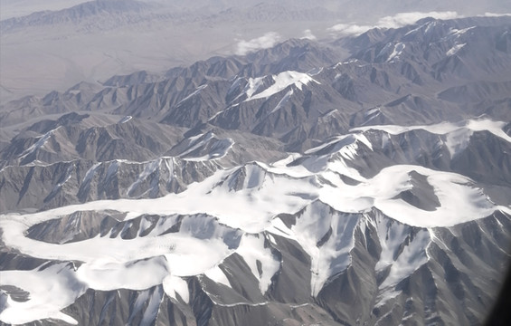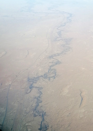 从库尔勒离开时再次感受到南疆的辽阔荒凉,飞机场边一望无际,几缕白烟升向天空,初升的太阳打透云层形成明亮的背景,一幅大漠孤烟直的画面。不像来的时候一片雾霾,回程天气好。从飞机上看新疆很震撼,沙漠有规律的图案像人画出来的,蜿蜒曲折的是塔里木河吧?山顶和褶皱间积着冰雪,还有冰湖,山峰在云海中像一座座小岛,飘动的云竟然形成了云瀑布。大自然神力无边,人工的力量更是叹为观止。荒漠中两条线清晰可见,笔直的应该是铁路,弯曲的是高速吧?现在出行如此方便,真要感谢几十年来我们国家的基础建设。