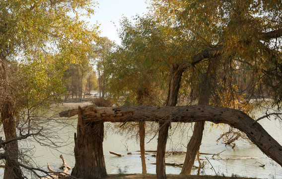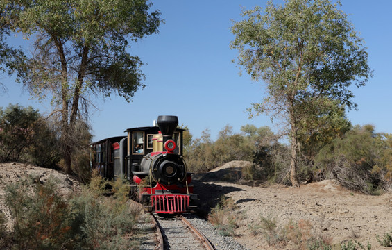 轮台南面的塔里木胡杨林公园名气很大,乌鲁木齐的朋友都要来这里看胡杨,说北疆的胡杨是零散的,这里才有气势。胡杨在维语中叫托克拉克,意为“最美丽的树”。开车到游客中心,买票进门,迎面就是3000年的胡杨王,树干粗树冠大,造型漂亮。从这里乘景区车,十几分钟到小火车站,附近有个观景台,能看到大片的胡杨林。景区车沿途看的是沙土中的胡杨,或疏或密,姿态各异。回程停几站,可以下车游玩。每10分钟一趟车,招手即停。小火车可以开到湖边,看胡杨和水的互动。小火车应该沿一条13公里的环形轨道转一圈,但不知道为什么,它到了一处湖边停下来让游客活动,然后原路返回了。门票40元,小火车100元,景区车好像30元。有几种套票,我们买的是门票加景区车加小火车加观景台套票,150元,比单买便宜30多。十月上旬胡杨以绿为主,稍微发黄,再晚半个月应该就黄了。但胡杨的沧桑感是不变的。