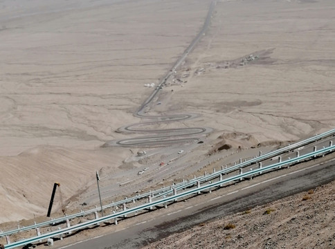 “今日走过了所有的弯路,从此人生尽是坦途。”这句著名的广告语矗立在盘龙古道的山脚下,周围很多人摆着各种姿势拍照,甚至不顾影响他人,把车停在广告牌前,轮流坐在车顶上拍个没完。这条2019年通车的盘山道在75公里长度里有600多个S弯,尽管弯多弯急,但路况很好,不是很难走。而且正在施工加宽,未来更好走。即便这样,还是有不少人在拐弯时开到对面路上“借道”,不仅显示了低水平,也暴露了低素质。除了山脚,中途还有几个观景台可以拍照。山顶有个海拔标识:4216米。有人会有身体不适。这条路不仅仅是个网红,重要的是它解决了瓦恰乡3000村民的出行问题,重点是它通过旅游给当地村民致富提供了多一种可能。我个人觉得通往盘龙古道的路更艰险,也很美。有巨大的下坂地水库,有围绕着树林草甸的村庄,有沟壑嶙峋的沙土山。建于2007年的下坂地水库(龙池)真是大呀!开了二三十分钟还没出它的范围。据介绍它跨度21公里,是新疆最大的水库之一。过了水库有个隐在密林里的村庄,有世外桃源的感觉,若不是为了赶时间,我真想拐进去看看。走盘龙古道有两种方法,从上至下或从下至上。从上走是从南往北,红其拉甫方向或塔什库尔干镇向南,见到盘龙古道自驾营地拐进去上山开始。从下走是从北往南,喀什方向或塔县往北,到曲曼检查站拐弯,经下坂地水库到达。从塔县出发再回到塔县要三个小时左右。不管哪个方向基本上都是一条路,没有岔口,而且有指路牌。从下往上先走小盘龙,很短,然后有个观景台和停车场,再往上是大盘龙,路长且海拔高,有些人只走小盘龙。我们是从下往上走的,快到时有一个公安卡子,检查驾照,大概是怕有人无法完成全程或发生危险。