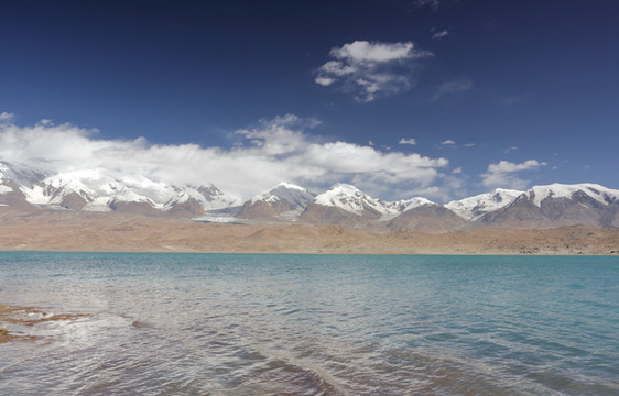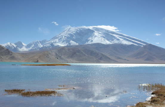 喀拉库里湖一边是慕士塔格峰,一边是宫格尔九别峰,赶上风平浪静和合适光线,雪山倒映在湖中,是难得的美景。我们去时风比较大,倒影难寻,但湖边有一小片被水草包围的水域相对平静,能映出部分雪山。湖的海拔高,湖边坡度大,走到湖边挺费力。这里同样修了栈道,但很多游客还是愿意走湖边的石子路,与湖水近距离接触。门票46元。还有一处冰川景观正在修建中,据说这个冰川可以用手触摸的。