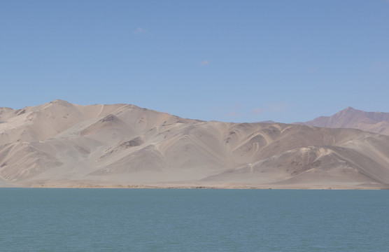 离开喀什第一站是白沙湖,湖面细长,对岸的白沙山将天蓝色与湖蓝色隔开,鲜明又纯净,清晰又柔和。沿途能从不同角度观赏,有一段还可以走到沙山近处。但最好的位置被隔起来收费,每人40元,停车免费。这里修了栈道,走路方便了,但栈道栏杆高,进入镜头也挺懊恼。