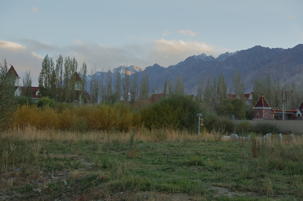 塔什库尔干在帕米尔高原深处,到此一游不容易。塔什库尔干塔吉克语意为“皇冠”或“戴皇冠者”, 突厥语意为“石头城”。我搞不懂怎么两种语言会用同一个词。这里南有海拔8611米的世界第二高峰乔戈里峰,北有海拔7546米的“冰山之父”慕士塔格峰。 县城里唯一的景点就是石头城,曾经是古代“西域三十六国”中蒲犁国的王城,也是古丝绸之路上的重要一站。石头城在朅盘陀时期(大约公元1世纪)就已存在,是新疆珍贵的历史古迹,搞专业的可能会有兴趣,一般游客看不出什么名堂。古石头城旁边的阿拉尔金草滩是观看拍摄石头城最好的角度,当地已在这里修建了木制栈道方便拍摄,同时防止踩踏草地。好的角度都和石头城一起围起来了,要收门票,90元包括交通车。游览沿单向栈道,车把游客送到入口,再绕到出口接人。据说金草滩傍晚时景色最漂亮,我们到得晚,下了石头城天已黑了。第二天一早到金草滩免费区时发现东方有座山,挡住了太阳。看来早上不合适。