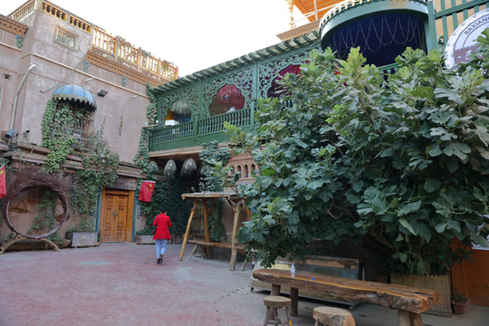 有说法北疆看风景,南疆看人文。其实现在的南疆有很多汉族了,除了喀什老城半展示性地保留了维族居住地,想见到当地少数民族的原始生活状态并不容易。喀什的高台民居已经将居民迁走了,正在修整以改成景点。少数民族的生活方式很大程度上现代化了。不要指望见到彪形大汉随身带着刀招摇过市,刀是禁物。餐馆的刀都有铁链拴着,不能离开厨房。街上有争执,不出两分钟就有jingcha到场。库尔勒人说新疆现在是全国最安全的地方。我们见到的少数民族多是服务员或小贩及景区讲解员,汉语不太好,沟通有点障碍。在喀什大巴扎一个干果摊的维族帅哥倒是沟通无障碍,所以从他那买了一批干果,回来发现核桃三分之二是坏的。