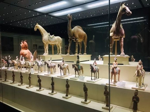 通过展柜凝望这些千年的文物,骆驼马队镇墓兽、婀娜的佛像佛身、坦胸露乳的仕女彩绘、气宇昂昂的刀郎军士......在这里,我们能一睹千年丝路佛国上的财富积累、看到滚滚红尘的奢靡、看到这片西域之地的金戈铁马!