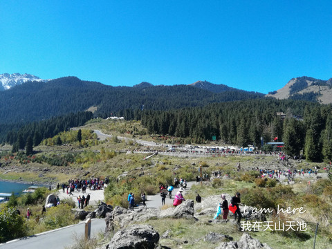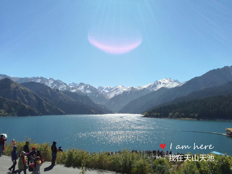 之前听网上戏说,天山天池和长白山天池,都是“不来后悔,来了也后悔的地方”。我们去过长白山天池,感觉它的景色就很壮观迷人,至今印象颇深,今天,我们对天山天池还是充满期待。交通车到达天池,下车的景色就明摆着,蓝天白云之下,绵绵的雪山,湛蓝的湖泊、青翠的松柏,明媚的阳光、通透的光影。“早知”瑶池“美,何须下西湖”,此说一点不为过。凡世间的事,大都是“耳听为虚,眼见为实”。