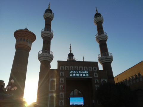从红山公园出来,我们在公园东门乘公交61路,1元/人,行程约40分钟,傍晚时分来到二道桥国际大巴扎。巴扎(维语意,为贸易集市),乌市二道桥国际大巴扎于2003年落成,是目前世界规模最大的巴扎。它集伊斯兰文建筑风格、文化商贸、娱乐餐饮为一体。被称为“新疆-中亚之窗”。如今,这里已成人们来乌市旅游观光的热门地之一。市区乘坐公交10路、16路、61路、63路等到二道桥站下车就可到达这里。
