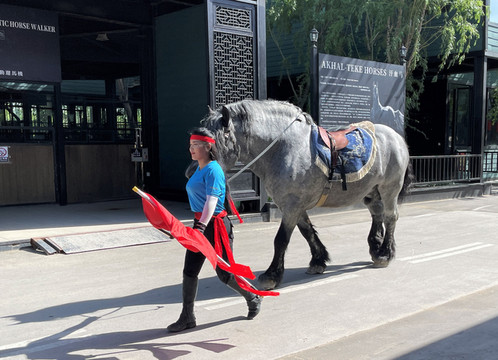 表演完的马陆续走出跑马场。