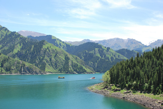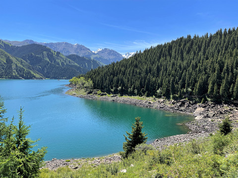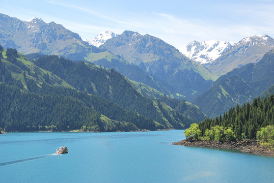 天山天池,古称“瑶池”,因为和传说中王母娘娘歌舞沐浴的仙境名字一样,加之得天独厚的自然景观,使得每一个来到天池的人都如同置身于仙境。天池风光绝美,犹如一块晶莹的宝石镶嵌在群峰之间,与远方的博格达雪峰相守相望。天池四季皆有景,四季皆可游。来新疆旅行不到天池,就等于没来过新疆。